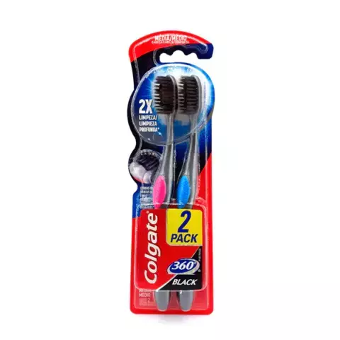 El Cepillo de dientes Colgate 360° Antibacterial de dos unidades, le otorga a tu salud bucal una protección totalmente increíble haciéndote sentir confiando y al hablar en público. Ya no tendrás que preocuparte por el mal aliento, pues el cepillado interdental que este cepillo dental ofrece remueve bacterias y patógenos que buscan quedarse en tu boca.